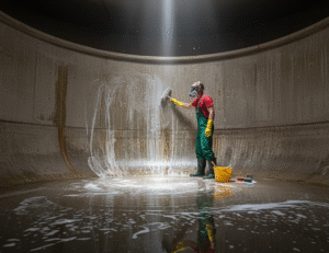 Our tank service begins with an internal inspection to identify sediment and contamination sources, followed by mechanical scrubbing and certified disinfection to remove biofilms and algae.